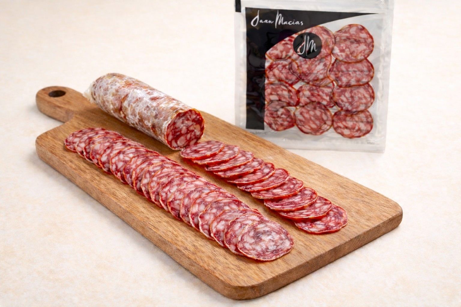 El salchichón ibérico Juan Macías loncheado en sobres de 50g es una opción perfecta para disfrutar de un embutido tradicional con un sabor suave, equilibrado y lleno de matices.